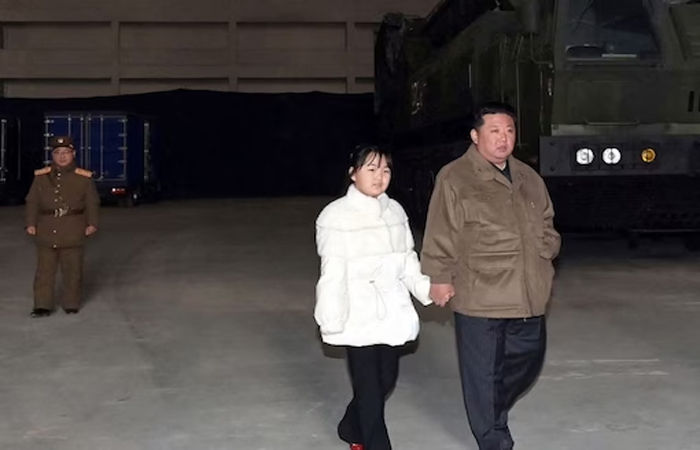 उत्तर कोरिया ने शुक्रवार को अंतरमहाद्वीपीय बैलिस्टिक मिसाइल का परीक्षण किया। रिपोर्ट के मुताबिक इस मिसाइल परीक्षण की सबसे खास बात ये थी कि इसके साथ किम जोंग की बेटी भी मौजूद थीं. इसमें वह अपने पिता का हाथ थामे नजर आ रही हैं. वह व्हाइट जैकेट में नजर आ रही हैं।