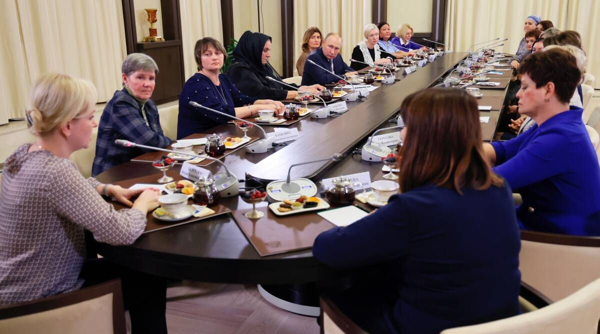 राष्ट्रपति व्लादिमीर पुतिन ने शुक्रवार को यूक्रेन में लड़ रहे सैनिकों की माताओं से मुलाकात की। मुलाकात के दौरान उन्होंने सैनिकों की माताओं से कहा कि पूरा रूस उनके दर्द और पीड़ा के साथ खड़ा है। एक अमेरिकी रिपोर्ट के मुताबिक रूस-यूक्रेन युद्ध में दोनों देशों के हजारों सैनिक मारे गए हैं। हजारों रूसी सैनिकों को यूक्रेन भेजा गया है। यूक्रेन में लड़ रहे रूसी सैनिकों की माताओं के एक समूह के साथ चाय, केक और ताजा जामुन के कटोरे के साथ एक टेबल के आसपास बैठे पुतिन ने कहा कि रूस उन सभी माताओं के दर्द को साझा करता है जिन्होंने युद्ध में अपने बेटों को खो दिया।
