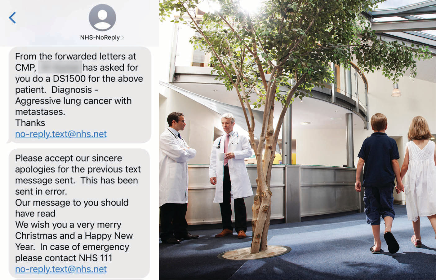 दुखद संदेश मिलने से अस्पताल में भर्ती हजारों मरीज चिंतित हैं। इस संदेश में उन्हें बताया गया है कि वह घातक फेफड़े के कैंसर से पीड़ित हो गए हैं। इस मैसेज के जरिए मरीजों की आंखों को कैंसर के बारे में पता चला। इस घटना के बाद मरीजों ने परिजनों से जानकारी जुटानी शुरू की। हालांकि बाद में सच्चाई सामने आने पर सभी ने राहत महसूस की। यह घटना ब्रिटेन के डॉनकास्टर की है।