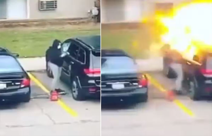 यह घटना अमेरिका की है। वायरल वीडियो में महिला खड़ी कार के पास जाती है। उन्होंने मुंह पर मास्क लगाया हुआ है और सिर पर हुंडी की टोपी पहन रखी है। महिला के हाथ में पेट्रोल की कैन है, जिसे वह कार में डाल रही है। वह फिर एक मोमबत्ती जलाता है और उसे कार में रखता है। लेकिन वह नहीं जानता होगा कि ऐसा करने से उस पर आग आ जाएगी। आग लगने से महिला का मुंह जख्मी हो गया। आग सीधे महिला के मुंह में लगी, लेकिन बाद में महिला चली गई। हालांकि बाद में महिला को पुलिस ने गिरफ्तार कर लिया था।