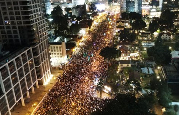 स्थानीय मीडिया के अनुसार, यरुशलम, हाइफ़ा, बेर्शेबा और हर्ज़लिया और तेल अवीव सहित पूरे इज़राइल के कई शहरों में हजारों लोगों ने प्रदर्शन किया। हाइफा में हुए विरोध प्रदर्शन में पूर्व प्रधानमंत्री यायर लापिड भी शामिल थे। यायर लैपिड ने कहा कि हम अपने देश को बचाएंगे क्योंकि हम एक अलोकतांत्रिक देश में नहीं रहना चाहते।